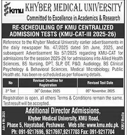 The detailed admission process, eligibility criteria, and online application procedure are available in the university’s official advertisement and can also be found on the KMU official website. Candidates are strongly encouraged to contact the KMU admission office in Peshawar for any clarification or guidance.